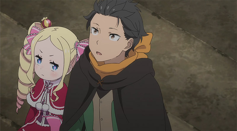Субару столкнулся с трудностями с первых же минут. Он попал в конфликт с местными хулиганами, которые едва не стали причиной его гибели. В этот критический момент ему на помощь пришла очаровательная девушка с серебристыми волосами. Её звали Эмилия. В знак благодарности Субару решил помочь ей в её собственных делах. Однако, их путешествие не прошло гладко: вскоре они снова оказались в опасности и погибли.